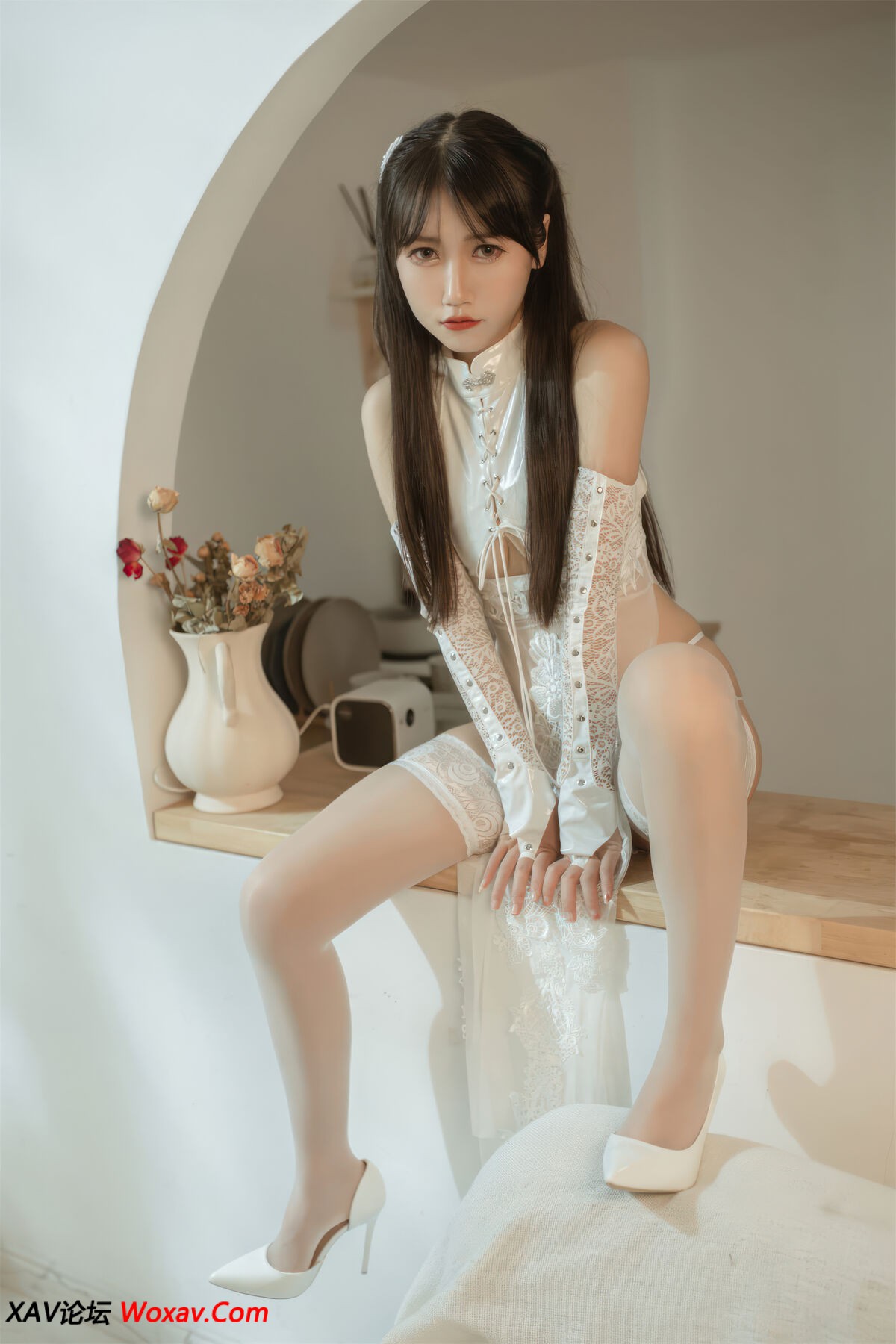 Coser@不呆猫 – 靡烟白皮旗袍